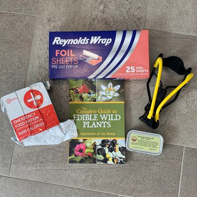 - Aluminum Foil Sheets - roll up your fresh catch or foraging treasures to keep them from falling into the campfire ashes. Next best thing to pots & pans.